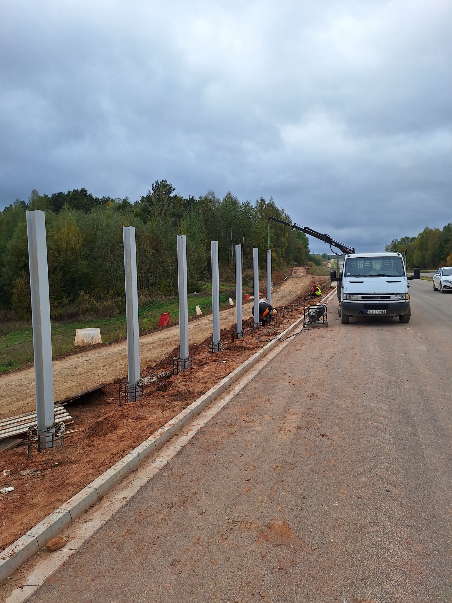 - 2025_10_14 Montaż słupów ekranów przeciwolśnieniowych na dojazdach do obiektu PZDd-9 jezdnia prawa